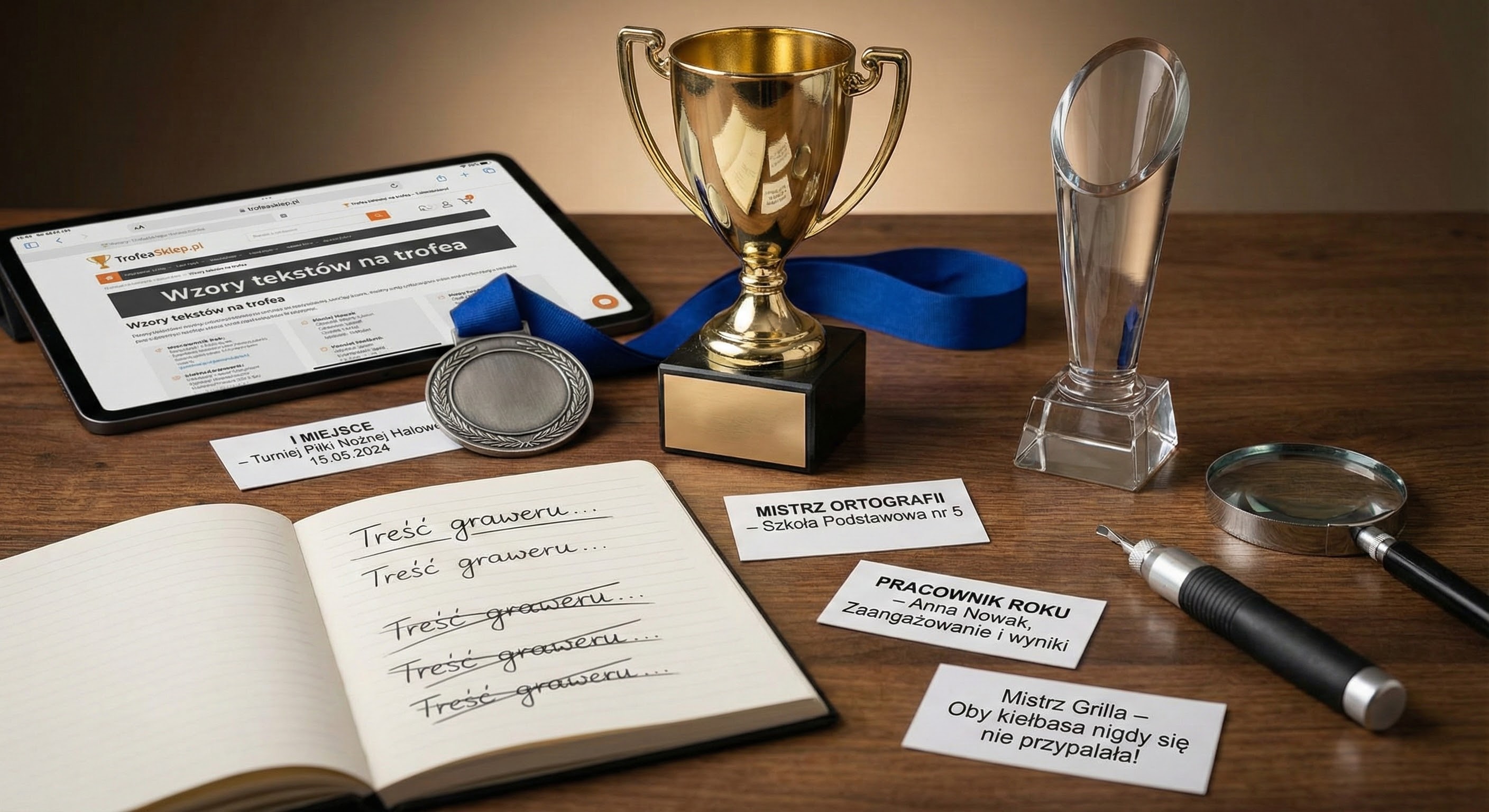 Nie wiesz, co wygrawerować na pucharze lub medalu? Sprawdź nasze gotowe propozycje tekstów dla sportowców, pracowników i uczniów. Kopiuj i korzystaj!