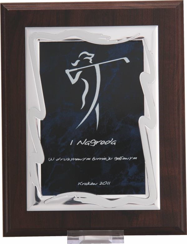 Dyplom drewniany z ozdobną blaszką po grawer