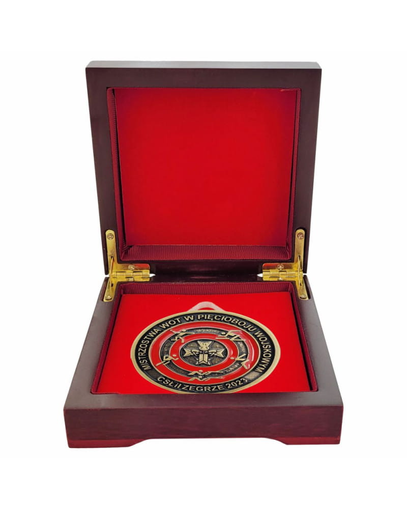 ETUI DREWNIANE ETM28 - CZERWONE - Do medali 70 mm