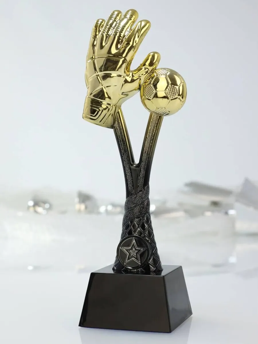 Efektowna figurka sportowa dedykowana bohaterom piłkarskiego pola karnego – bramkarzom. Model A706, wykonany w całości z trwałego i lśniącego tworzywa sztucznego, przedstawia klasyczny motyw bramkarskiej rękawicy broniącej piłkę. Ta precyzyjnie wykonana nagroda idealnie oddaje wagę spektakularnych parad i refleksu na linii bramkowej. Całość osadzona jest na solidnej podstawie z wyznaczoną przestrzenią na pamiątkową tabliczkę z dedykacją. To doskonały wybór na turnieje piłkarskie, rozgrywki szkolne, ligi orlikowe oraz jako dedykowane wyróżnienie dla Najlepszego Bramkarza turnieju (tzw. Złota Rękawica).
