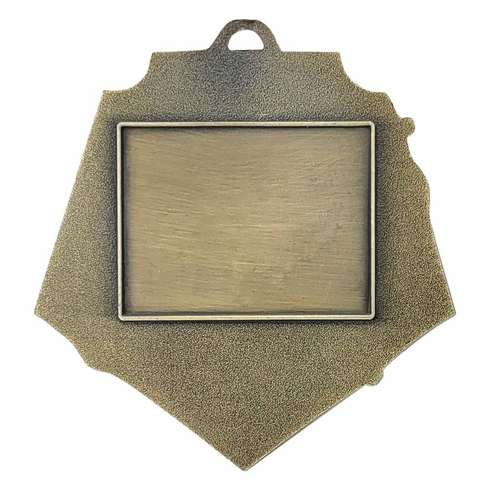 Spektakularna, masywna i niezwykle prestiżowa pamiątka dedykowana piłkarzom i drużynom futbolowym. Model M98 wyróżnia się oryginalnym kształtem tarczy, bardzo dużym rozmiarem 71x75 mm oraz wyjątkową grubością (aż 4 mm), co nadaje mu wyczuwalnie ciężki, elitarny charakter. Bogaty, trójwymiarowy awers uwiecznia pełną napięcia akcję boiskową – dwóch zawodników walczących o piłkę. Projekt zyskał niesamowitą głębię i dynamikę dzięki zastosowaniu potrójnej, kolorowej emalii: zielonej na murawie oraz biało-czerwonych akcentów w tle. Szlachetne, matowe wykończenie w odcieniach postarzanego metalu dostępne jest w trzech wariantach: złoto patyna (1. miejsce), srebro patyna (2. miejsce) i brąz patyna (3. miejsce). Personalizacja tego modelu odbywa się poprzez wklejenie prostokątnej tabliczki sublimacyjnej na rewersie. To absolutnie bezkompromisowe wyróżnienie na finały pucharów, rozgrywki ligowe i mistrzostwa.