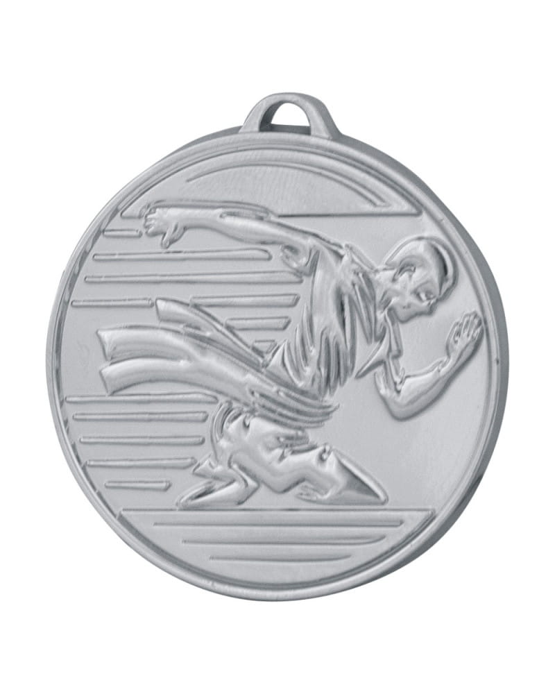 Bieganie to sport, w którym liczy się każdy ułamek sekundy, niespożyta energia i dynamika. Medal M57 to nagroda, która swoim designem idealnie oddaje ten wysiłek. Wyraźnie wytłoczony, trójwymiarowy motyw sprintera potęguje wrażenie ruchu i szybkości. Dzięki podwyższonej grubości do 3 mm, medal ten po wzięciu do ręki sprawia wrażenie produktu bardzo porządnego i solidnego, stanowiąc świetny kompromis między modelami podstawowymi a ekstremalnie ciężkimi trofeami.