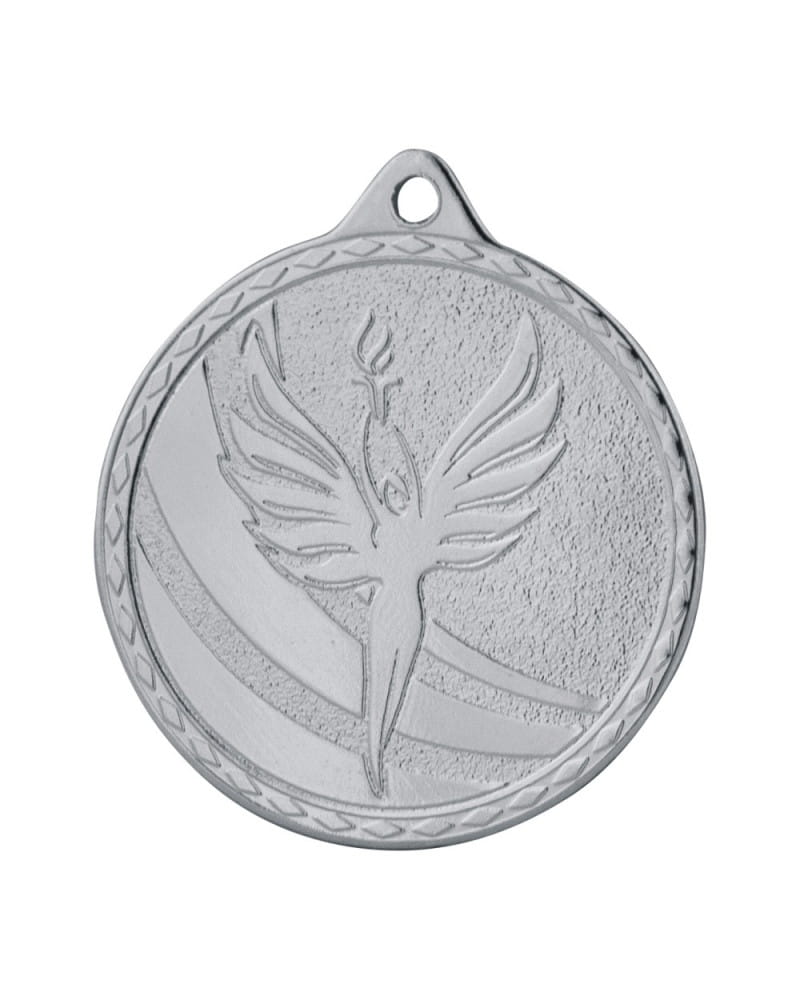 Klasyczny, uniwersalny i ekonomiczny medal sportowo-okolicznościowy. Posiada standardową średnicę 50 mm oraz grubość 2 mm, co czyni go lekkim i bardzo poręcznym trofeum – idealnym wyborem na masowe wydarzenia i szkolne akademie. Awers zdobi piękny, trójwymiarowy motyw Wiktorii (bogini zwycięstwa z wieńcem laurowym), który sprawdzi się w absolutnie każdej dyscyplinie. Medal dostępny jest w trzech lśniących wariantach kolorystycznych: złoto błysk (1. miejsce), srebro błysk (2. miejsce) i brąz błysk (3. miejsce). Personalizacja tego modelu odbywa się wyłącznie za pomocą aluminiowych krążków sublimacyjnych. To doskonały wybór o świetnym stosunku jakości do ceny na zawody międzyszkolne, turnieje amatorskie oraz wszelkie konkursy.