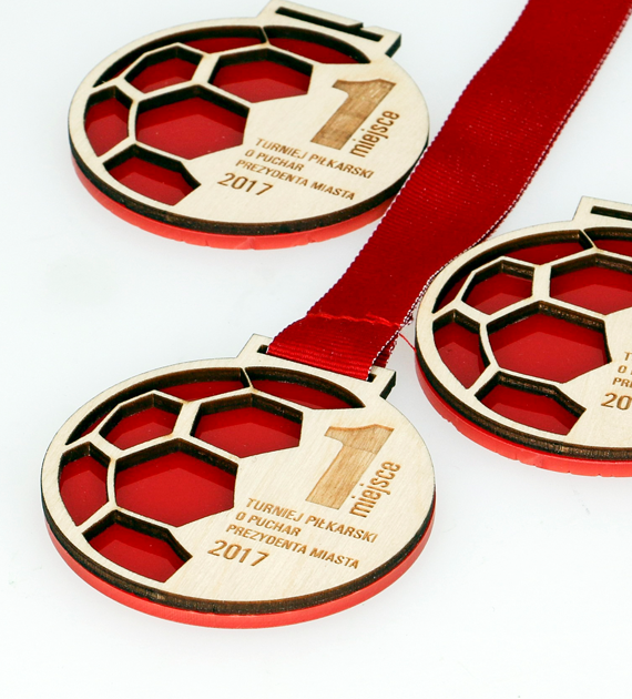 Wysokiej jakości wykonanie z różnych materiałów, tj. pleksy 3 mm oraz sklejki 3 mm, dostępnych w różnych wersjach kolorystycznych. Poprzez łączenie dwóch struktur i faktur można uzyskać efekt przestrzenny. Spersonalizowany laserem nada wyjątkowego charakteru Twojej imprezie. Medale dostępne ze wstążką zwykłą lub spersonalizowaną.