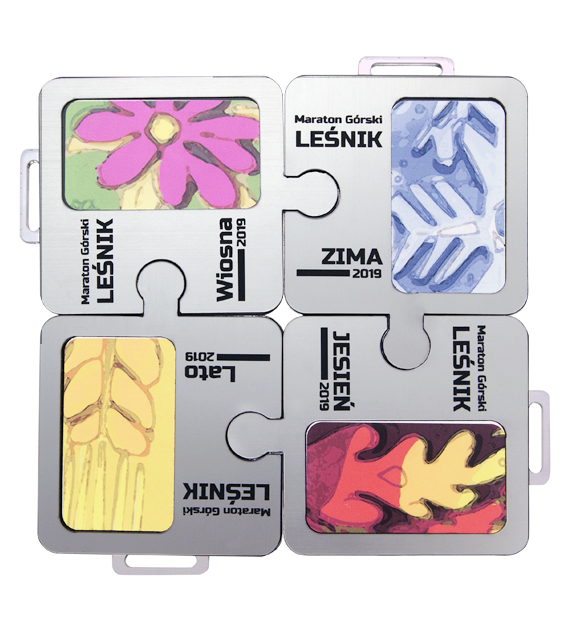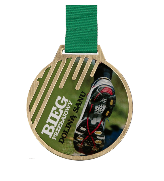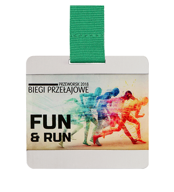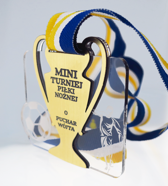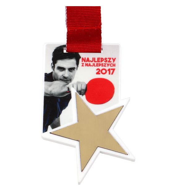 Medal pleksa z nadrukiem i laminat z grawerem