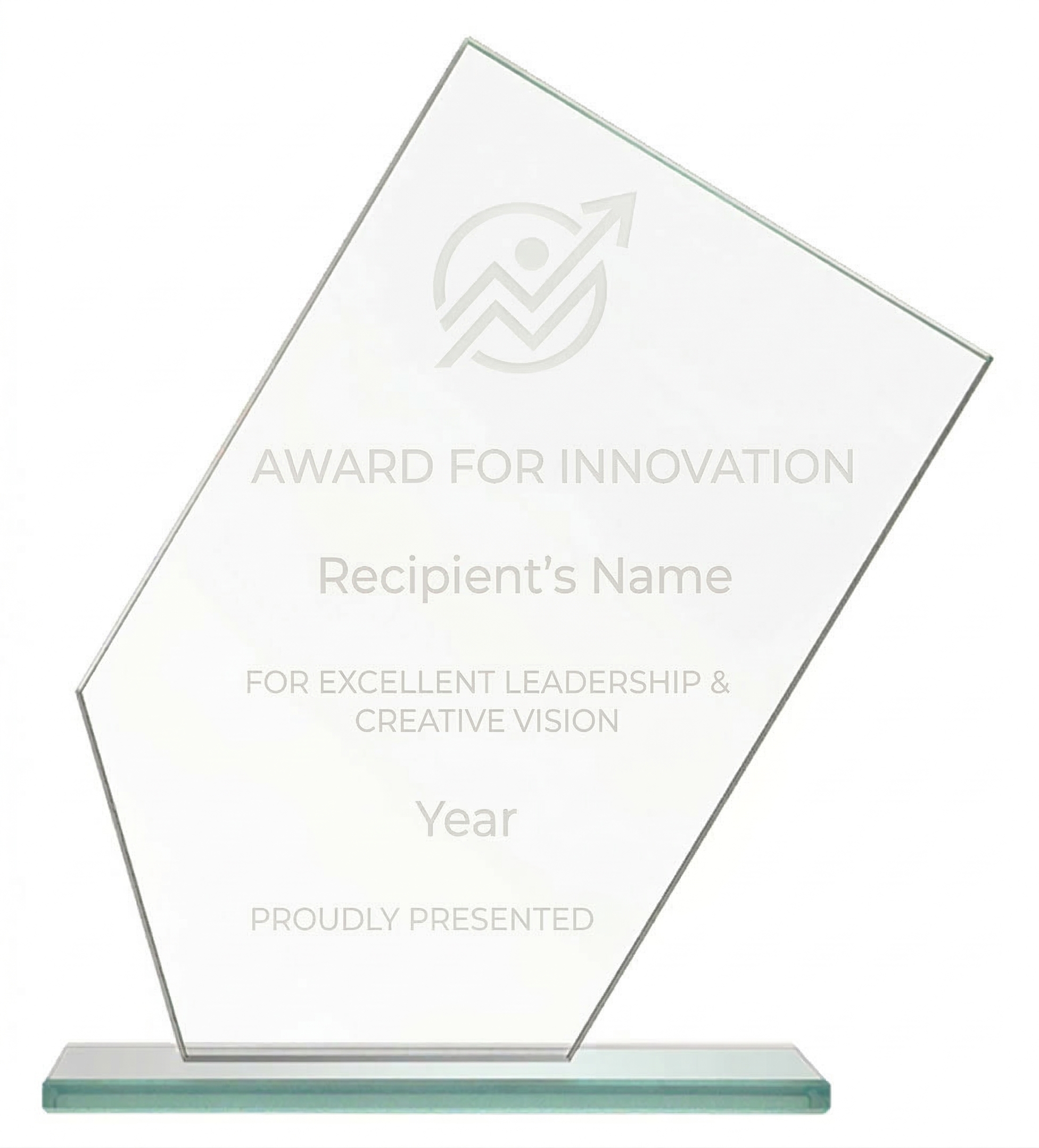 Przeznaczenie: Nowoczesne dyplomy na szkle, nagrody dla innowatorów, wyróżnienia za dynamikę rozwoju, certyfikaty biznesowe i szkoleniowe