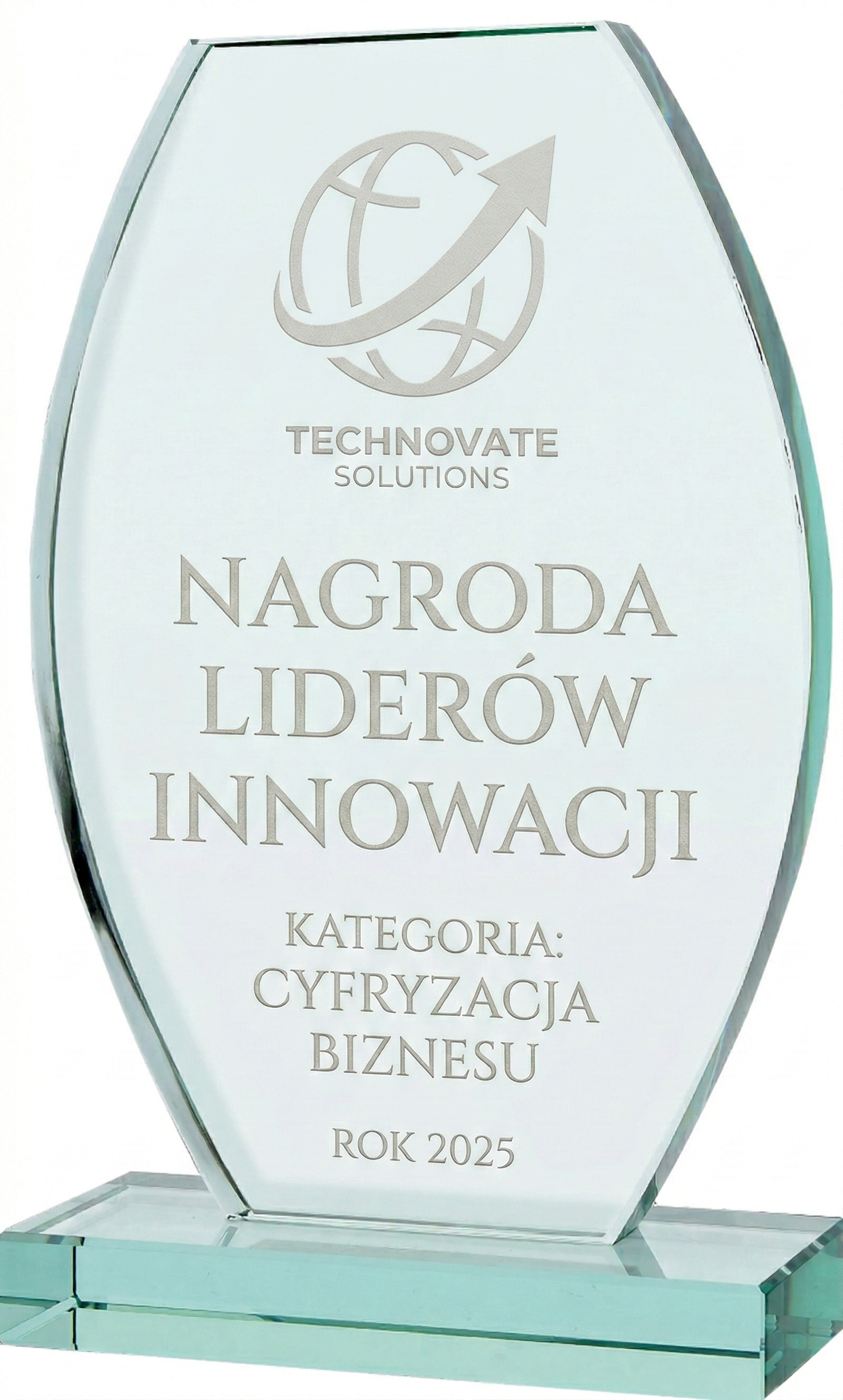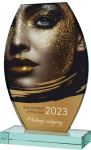 Szukasz nagrody, która w wyrafinowany i subtelny sposób podkreśli znaczenie najważniejszych osiągnięć Twojej firmy? Wybierz zjawiskowe trofeum szklane | G043. Ta obła, łagodnie zaokrąglona bryła w kształcie elipsy osadzonej na solidnej podstawie mierzy 21 cm wysokości i 13,5 cm szerokości. Wykonana z grubego na 1,9 cm szkła o szlachetnym, lekko zielonkawym odcieniu, waży solidne 1,8 kg, gwarantując laureatowi poczucie obcowania z produktem najwyższej klasy. Oferujemy pełen wachlarz personalizacji – od klasycznego graweru po tętniący barwami nadruk UV i spektakularną technikę łączoną generującą efekt przestrzennej głębi. Trofeum dostarczane jest w ekskluzywnym etui.