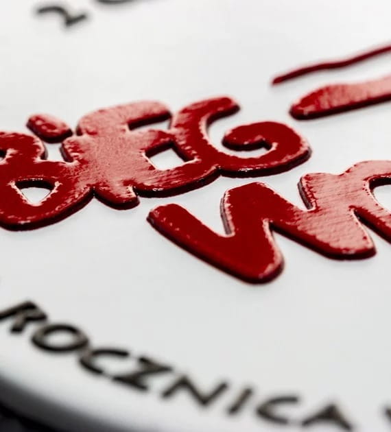 Połącznie dwóch materiałów: stal + plexa/sklejka Wypukłości do 0,2 mm Wybrane powierzchnie lakierowane Plexa/sklejka grawerowana lub z kolorowym nadrukiem |