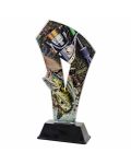 Statuetki zostały wykonane z bezbarwnej pleksi, ciętej laserem wraz z bezpośrednim, kolorowym,