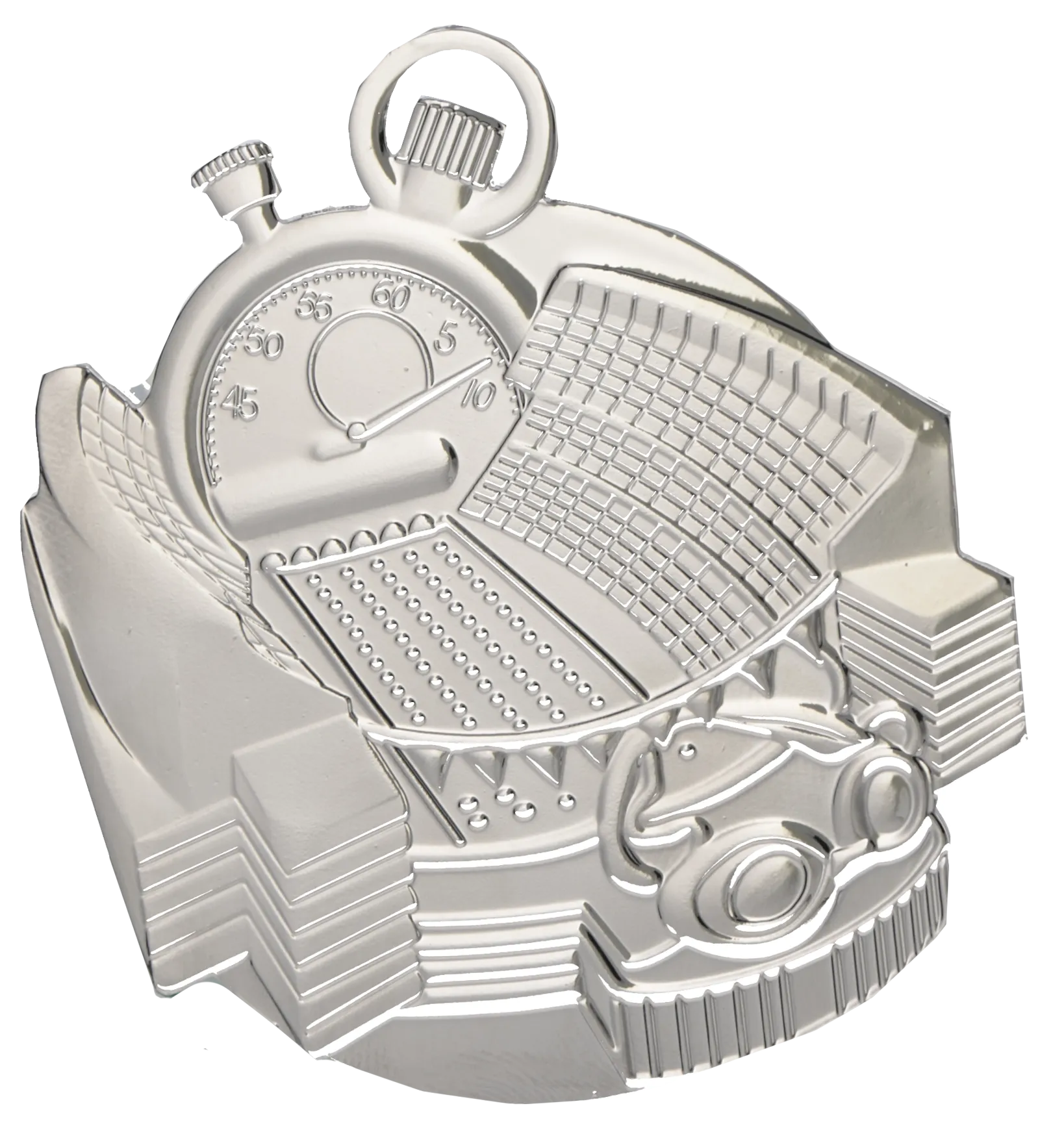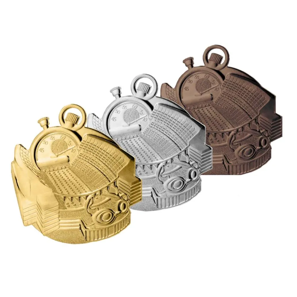 Solidny i niezwykle szczegółowy medal stalowy o średnicy 50 mm, dedykowany pasjonatom pływania. Posiada unikalny, głęboko tłoczony awers przedstawiający stoper, tor pływacki oraz okularki – absolutne atrybuty każdego zawodnika na basenie. Dostępny w trzech klasycznych wariantach kolorystycznych (złotym, srebrnym i brązowym), co pozwala na skompletowanie pełnego podium. Idealny na mistrzostwa szkółek pływackich, zawody międzyszkolne, mityngi sportowe oraz zawody ratownicze.