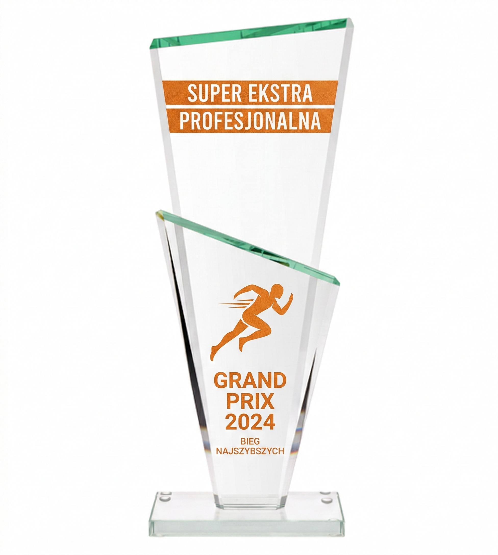 Największe triumfy w biznesie i sporcie to efekt pracy na wielu różnych płaszczyznach. Statuetka Szklana GS811 w doskonały sposób wizualizuje tę złożoność. Jej awangardowy design opiera się na dwóch zachodzących na siebie, geometrycznych taflach szkła. Tylna, wyższa warstwa stanowi potężne tło, a przednia, drapieżnie ścięta tafla dodaje całości niezwykłej dynamiki. Dzięki wysokości przekraczającej 32 centymetry, trofeum to dumnie zdominuje każdą przestrzeń i podium, dając laureatowi satysfakcjonujące poczucie odbioru nagrody wagi ciężkiej. To bezbłędny wybór na nagrody główne podczas uroczystych ceremonii, podziękowania dla zarządu oraz elitarne wyróżnienia dla liderów sprzedaży.